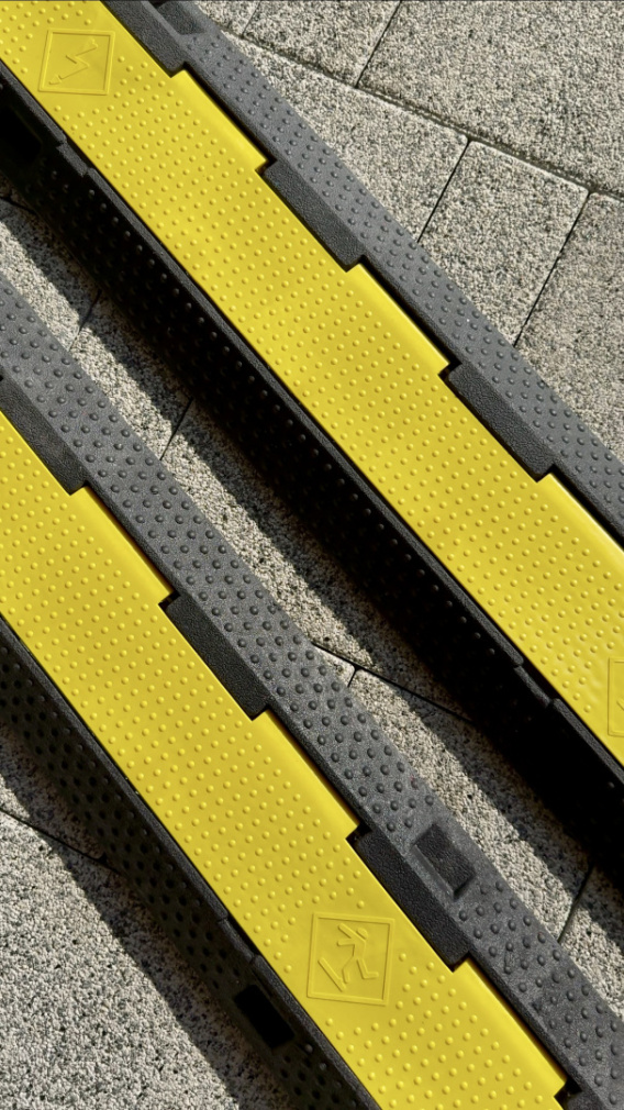 Najazd kablowy dwukomorowy cechuje się prostym montażem - wystarczy rozłożyć najazdy łacząc w oczekiwaną długość i umieścić kable w odpowiednich komorach. Dzięki temu w łatwy sposób można uporać się z bałaganem wynikającym z rozrzuconych przewodów oraz uniknąć potencjalnych zagrożeń związanych z potknięciami czy uszkodzeniami instalacji elektrycznej, szczególnie podczas wydarzeń.