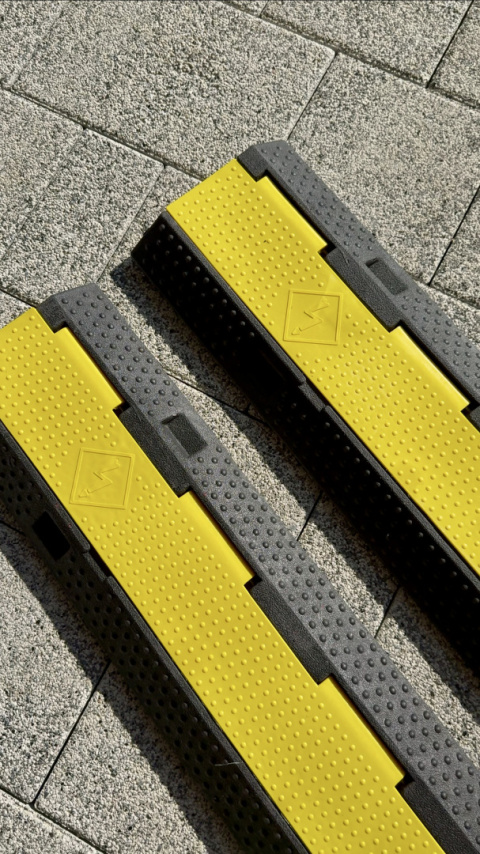 Najazd kablowy dwukomorowy cechuje się prostym montażem - wystarczy rozłożyć najazdy łacząc w oczekiwaną długość i umieścić kable w odpowiednich komorach. Dzięki temu w łatwy sposób można uporać się z bałaganem wynikającym z rozrzuconych przewodów oraz uniknąć potencjalnych zagrożeń związanych z potknięciami czy uszkodzeniami instalacji elektrycznej, szczególnie podczas wydarzeń.